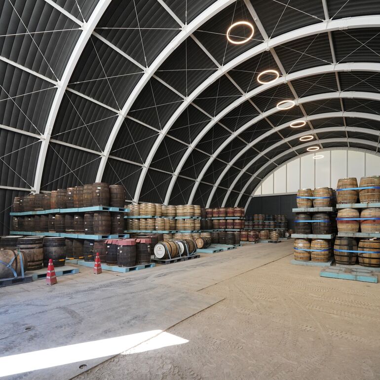 こうして実現した土の床で設えた熟成庫は「ジムスワンハウス」と名付けられた。施主である蒸留家の師であり、ウイスキー界のアインシュタインとも称された蒸留家ジム・スワン博士への敬意を込めた命名である。博士の研究の結晶がこの熟成庫に息づいており「呼吸する土の床」もそのひとつである。熟成庫の中央、フォークリフトの通行頻度が高い場所には鉄板を敷いた。これだけが仕上げである。ここには洒落た段差も粋な仕掛けもない。しかし、これほど解説しがいのある床を他に設計したことはない。ジムスワンハウスには世界中から見学者が訪れる。あるとき、年季の入ったウイスキーファンを案内したところ、土の床を見て握手を求められた。意匠には乏しくとも深い意味を宿した床なのである。ここで育まれるウイスキーが世に出るのは2027年を予定している。