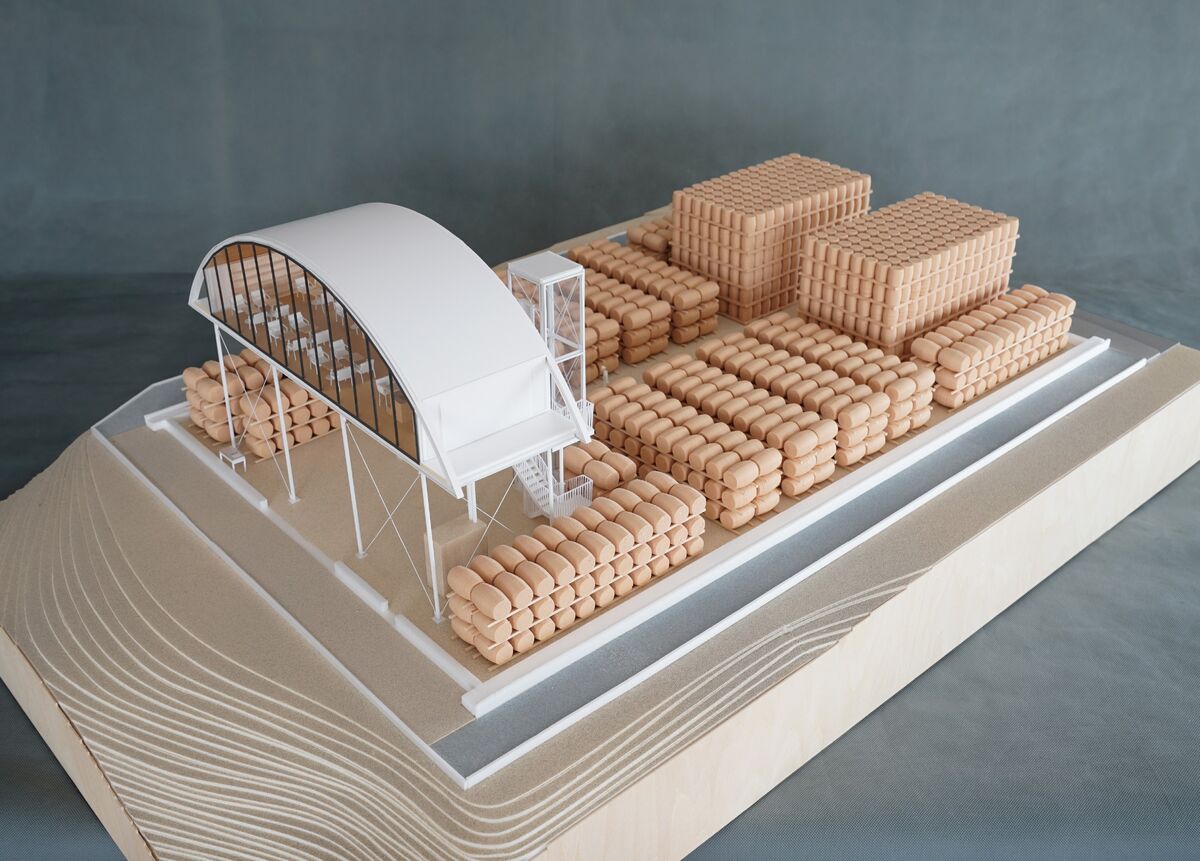 思いがけずウイスキー蒸留所を設計する機会を得た。2019年のことである。大麦麦芽、酵母、水のみを原料とするモルトウイスキーの製造工程は、シンプルながら奥深く、なかでもポットスチルと呼ばれる銅の蒸留釜は魅力的であった。これら蒸留設備をどのように扱うか、我々はその配置や扱いに思索を巡らせていた。しばらくして施主に世界的に著名な蒸留家が加わった。その蒸留家いわくウイスキーの風味の60%は熟成で決まるという。よってまずは熟成庫の設計に注文があるとのこと。我々は見せ場と信じていた蒸留設備の検討を一旦脇に置き、熟成庫のあるべき姿に耳を傾けた。 熟成庫の床は土のままが理想だと言う。土壌に棲む微生物が息づき、地中から湿気が立ち上る状態を保ちながら、2.5トン/m2もの樽の重量を支える必要があるとのこと。しかし一般的な地盤改良材を用いたのでは土がアルカリ化してしまうため、微生物を守ることができない。行き詰まっていた折に有機性の土壌固化材というものを見つけた。施工例を見ると環境汚染に気を使う農地に隣接した事例ばかりである。製造元によれば、改良土からカビが発生することがあり、これによりクレームを受けることもあるという。スコットランドの歴史ある熟成庫がどこもカビに覆われていたことを思い出し、蒸留家と我々はむしろ歓迎した。