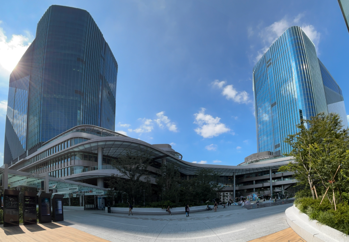 2025年9月12日にOPENした高輪ゲートウェイ駅の前にそびえ立つニュウマン高輪。