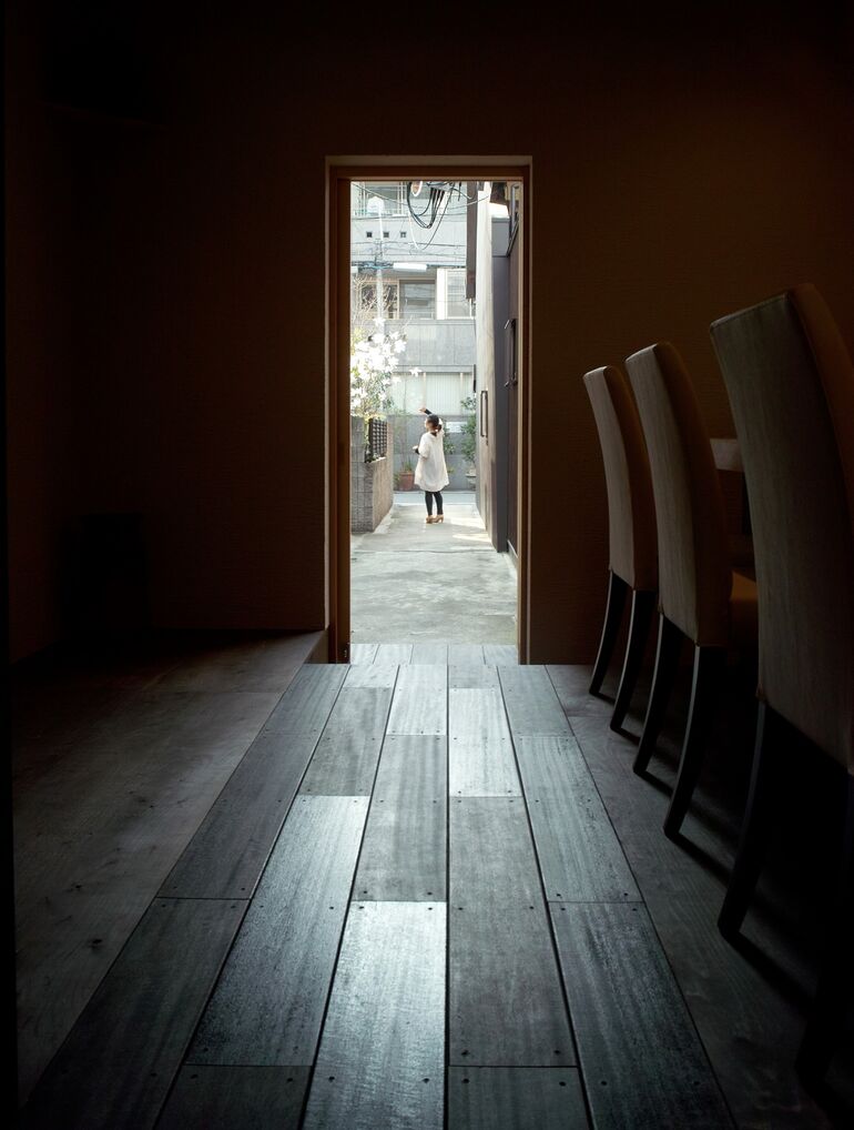 私事で恐縮だが、昨年、第一子となる息子が生まれた。子育てを通して改めて考えるようになったのは、床の意味だ。この一年で、寝返りができるようになり、座れるようになり、はいはいができるようになり、つかまり立ちができるようになり、歩けるようになった。身体性が変わるごとに床の硬さや質感に気を配った。床とはそれほどに身体に密接なものであり、常に身体に触れ続けているという点で他のエレメントとは一線を画する。立つ、歩く、走る、座る、寝るなど様々なふるまいにおいて床は直接的に身体に影響を及ぼすことになる。 また、床は、自然光や人工照明も含めて光を受けやすく質感が際立つ。液体のこぼれや汚れ、ほこりの受け皿となりメンテナンス性も問われる。そういったことを鑑みると、床を見れば設計者や住人の建築に対する向き合い方がわかるとすら言えるのではないだろうか。立ったり、座ったり、あるいはテーブルにもなったりするような機能重視型。肌合いや暖かさなどの居心地を大切にする快適性重視型。色味や艶などの見栄えにこだわる美観重視型。 掃除がしやすかったり、汚れが目立ちにくかったりなど清掃の手間を省くメンテナンス重視型。一つの価値観に特化するのではなく、様々な観点に配慮したバランス型。などが挙げられるだろうか。 さらに視点を広げてみると、床は、内部空間と外部空間やリビングと和室など領域を表象したり、床材の目地や継目によってスケールや方向性が現れたりする性質がある。それゆえに濡れ縁のように内部空間のような素材を外部空間まで延長したり、土間のように外部空間の素材を内部空間まで引き込むことにより領域を曖昧にさせたり、中間領域を発生させることができたりする。あえて外部で使われる材を内部で用いたり、床材を天井に用いるなど、ズラすことで空間の意味を変容させるなどの設計手法にも活用されている。 私の実家は、京都市南区に1960年代に建てられた町家であるが、家の中を土間が東西に通り抜けていたし(いわゆる通り土間)、廊下と縁側がシームレスに連続していた。家の中に外が入り込んでいたり、家の中を歩いていると自然と外に繋がっていたりした。つまり、床が家の空間構成を牽引し体験の主要素となっていたように、今から考えると解釈できる。 そんな住宅に生まれ育ったからだろうか、私が設計する建築においても、二階の床と階段と一階の大きなテーブルを同じ材で連続させ、あたかも二階の床が抜け落ち一階まで連続しているかのような表現を用い上下階の関係性をデザインしたり(公文式という建築)、床材を切り替えることで隣接する空間の切り替わりを明示したり(オハドコの家)、外部の路地を建築内部に引き込むような空間構成を設計したりしてきた(小道が通り抜ける町屋)。 こうして考えてみると床というのは、身体に直接影響を及ぼす空間体験や空間構成を司る、実に面白いエレメントであることがわかる。 公文式という建築 写真:繁田諭
